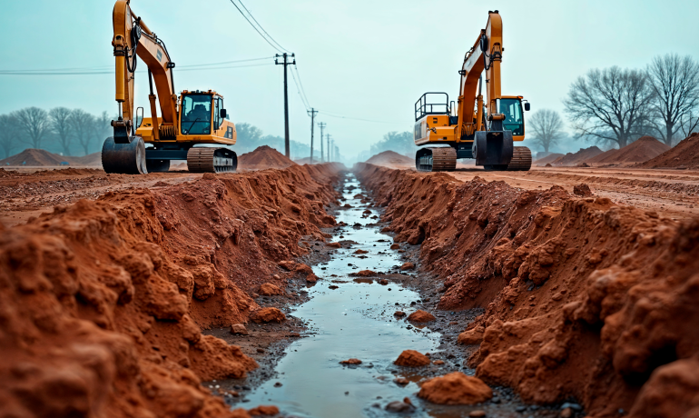 - Escavação e regularização de áreas
